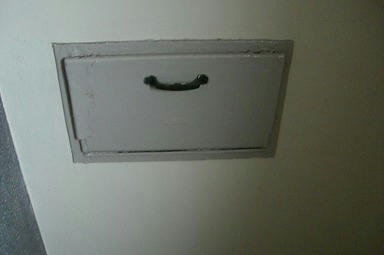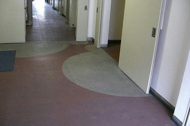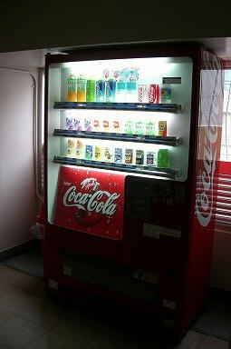 4階に自動販売機。団地内廊下にデーンと存在感があります。