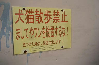 散歩禁止看板の字も建て替えと共に??消えてきてます。