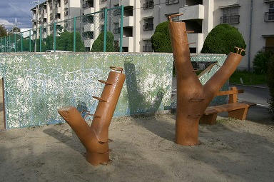 木のオブジェ風遊具。ちゃんと塗り直ししてありました。