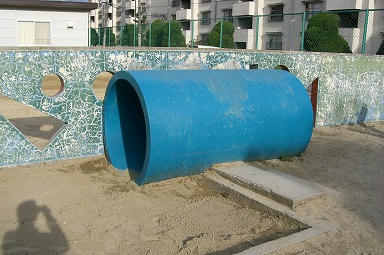 土管。ドラえもんに出てきそうです。塗装もドラえもん色。