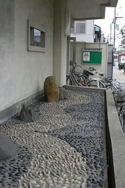 エントランス横には庭風の石が・・・