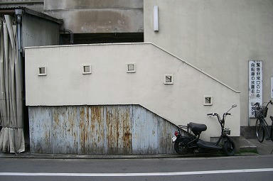 では団地内部へ・・・。階段の穴が・・・味ある感じです。