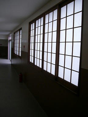 なぜか4階の廊下の窓だけ障子。なぜ??