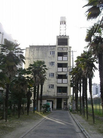 住棟の上にちょこんとのった給水塔が法円坂住宅の目印です。