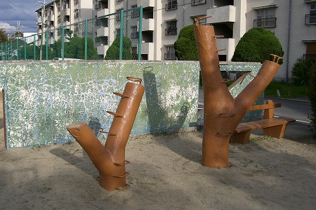 木風の遊具<木登り代用品か!?>(春日丘団地)