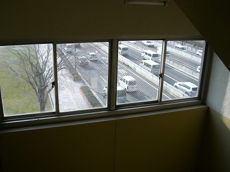 上階より。この辺りの阪神高速は一般道と同じ高さを走ります。