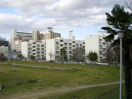 難波宮横の団地。となりは遺跡なのでめちゃ広々しています。
